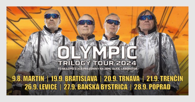 S radosťou oznamujeme návrat legendárnej Trilógie skupiny Olympic na scénu s nezabudnuteľným koncertným turné Trilogy Tour 2024! Táto veľkolepá show sľubuje dychberúce efekty, vizuálne projekcie a samozrejme tie najlepšie skladby z kultových albumov Prázdniny na Zemi, Ulice a Laboratoř. Je to jedinečná príležitosť zažiť na vlastnej koži ucelené kúzlo týchto troch zásadných albumov, ktoré spoločne tvoria symfóniu hudobnej histórie.